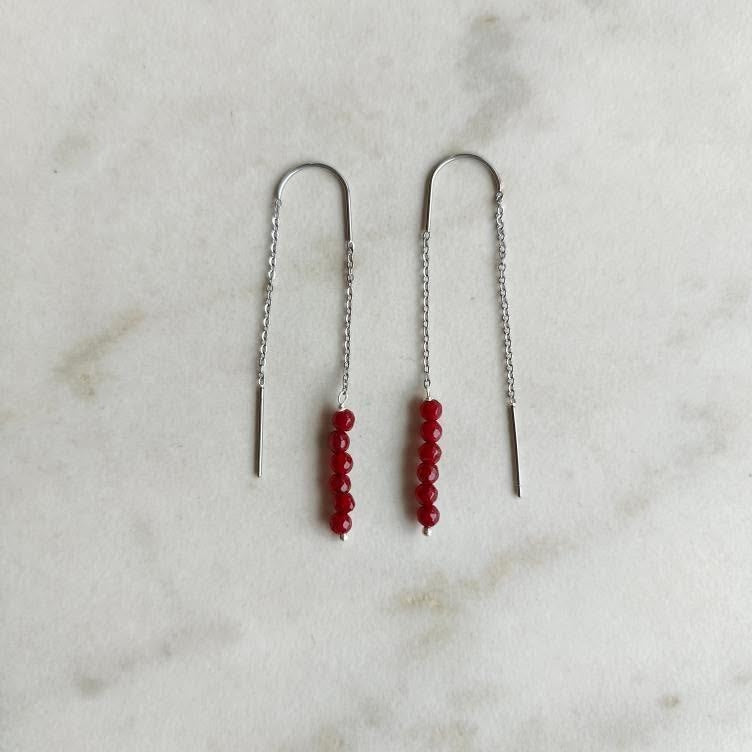 Oorbellen doortrekkers bordeaux pareltjes